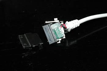 写真は以前に、カーステレオ接続用のケーブルを作った際に買ってきたものです。このタイプは爪を四箇所はずして やるだけで分解できたのですが、今回のものは接着剤で張られていたのでマイナスドライバーではがしました。